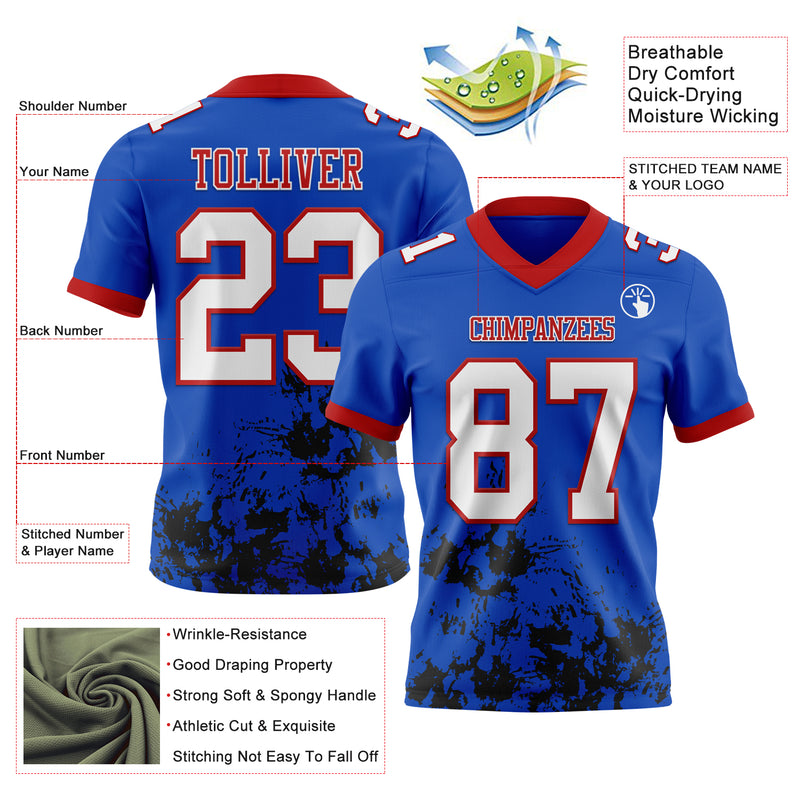 Custom Thunder Blue White Black-Red 3D Pattern Splash Authentic Football Jersey