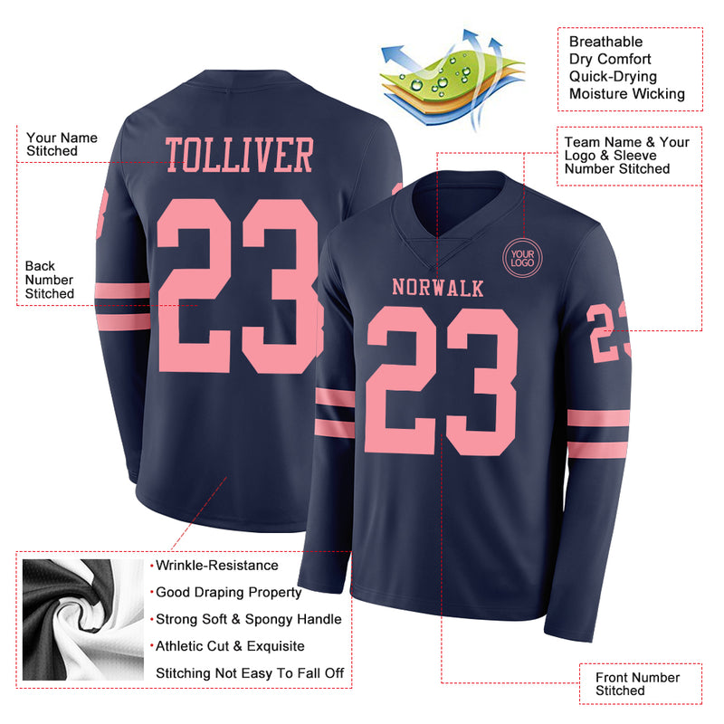 Custom Navy Medium Pink Long Sleeve Authentic Football Jersey
