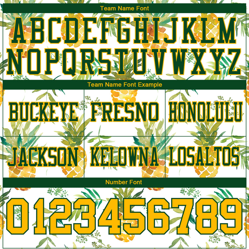 Custom White Gold-Green 3D Pattern Fruit Pineapple Authentic Football Jersey