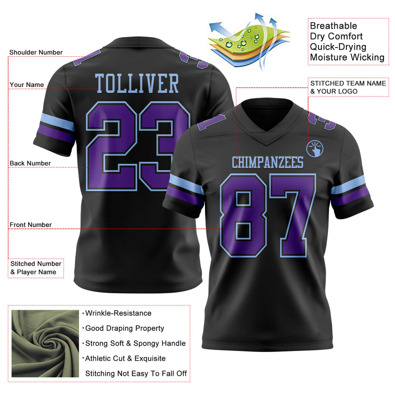 Custom Black Purple-Light Blue Authentic Football Jersey