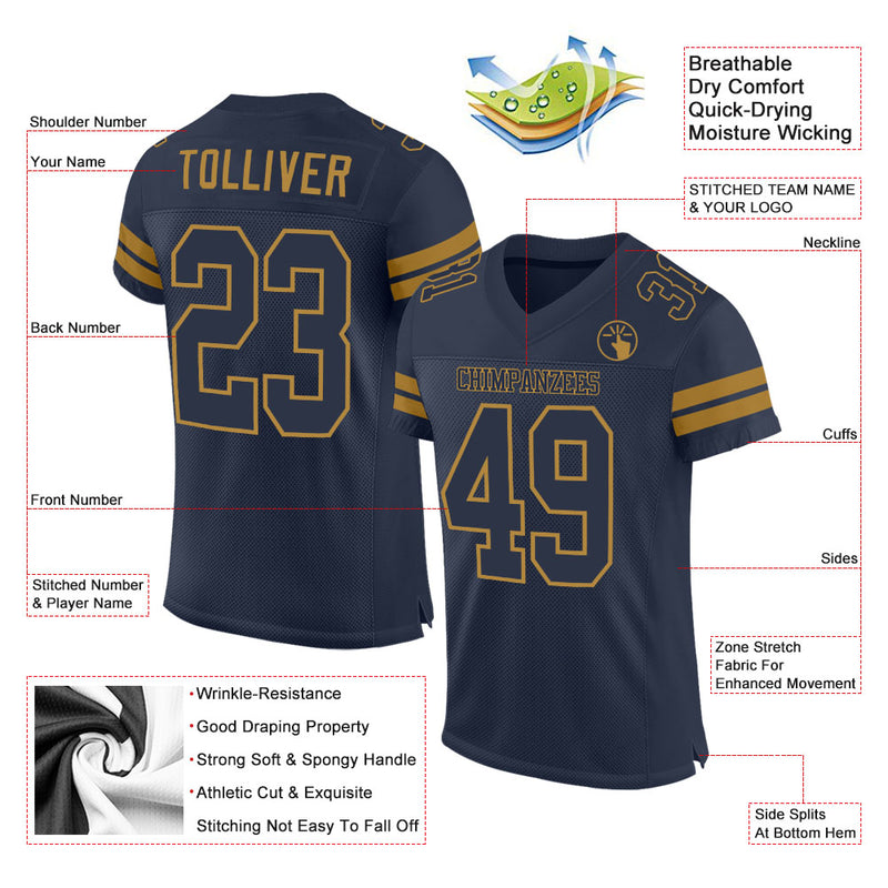 Custom Navy Navy-Old Gold Mesh Authentic Football Jersey