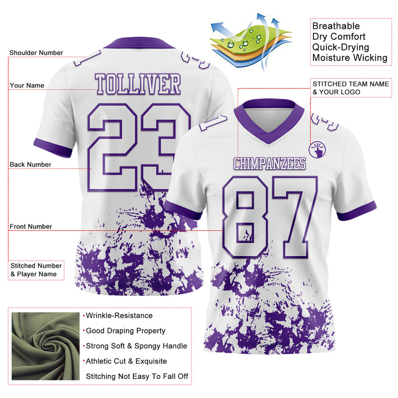 Custom White Purple 3D Pattern Splash Authentic Football Jersey