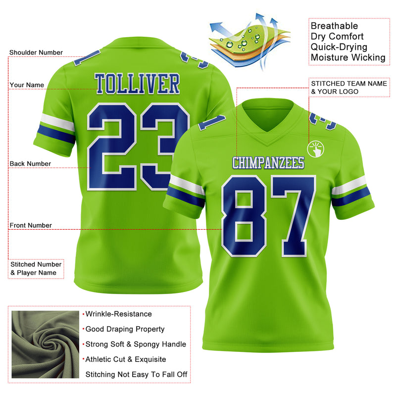 Our custom football jersey allows you to create your own design, adding your name, team logo, or any special graphics that represent your team spirit. Made from high-quality materials, it offers exceptional comfort and durability, ensuring you perform at your best in your custom uniform.