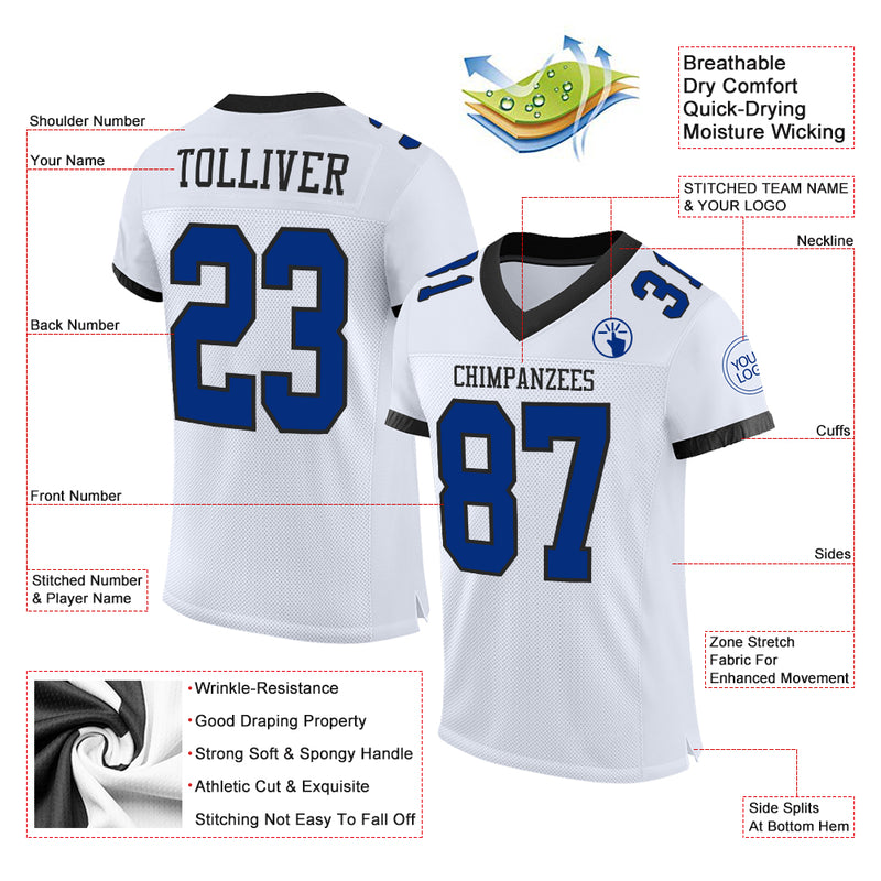 Custom White Royal-Black Mesh Authentic Football Jersey