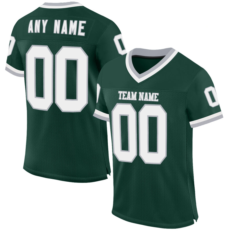 Custom Green White-Gray Mesh Authentic Throwback Football Jersey