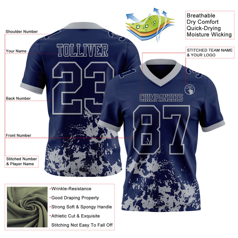 Custom Navy Gray 3D Pattern Splash Authentic Football Jersey