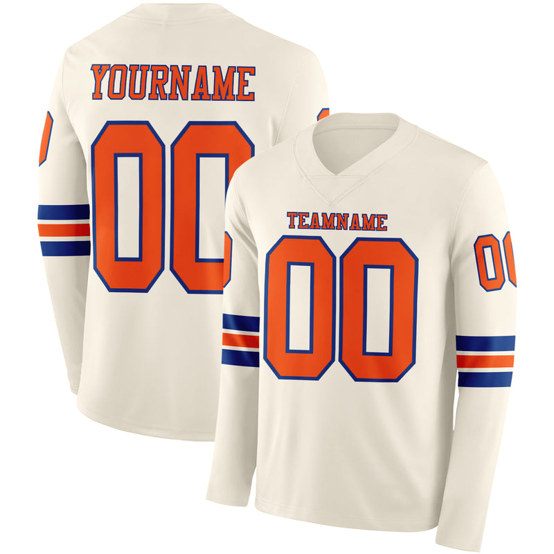Custom Cream Orange-Royal Long Sleeve Authentic Football Jersey