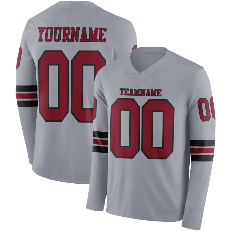Custom Gray Crimson-Black Long Sleeve Authentic Football Jersey