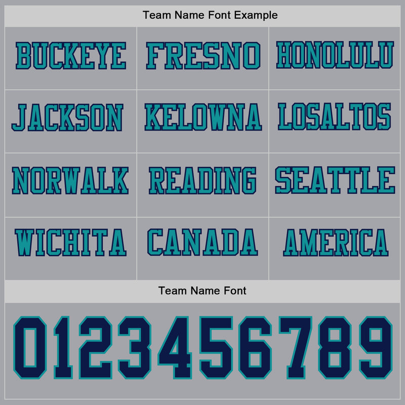 Custom Gray Navy-Teal Long Sleeve Authentic Football Jersey