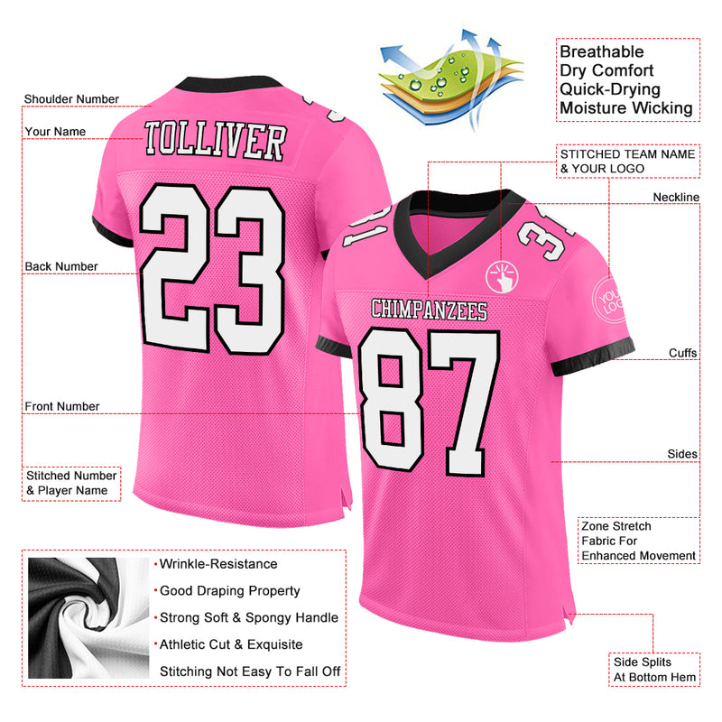 Custom Pink White-Black Mesh Authentic Football Jersey