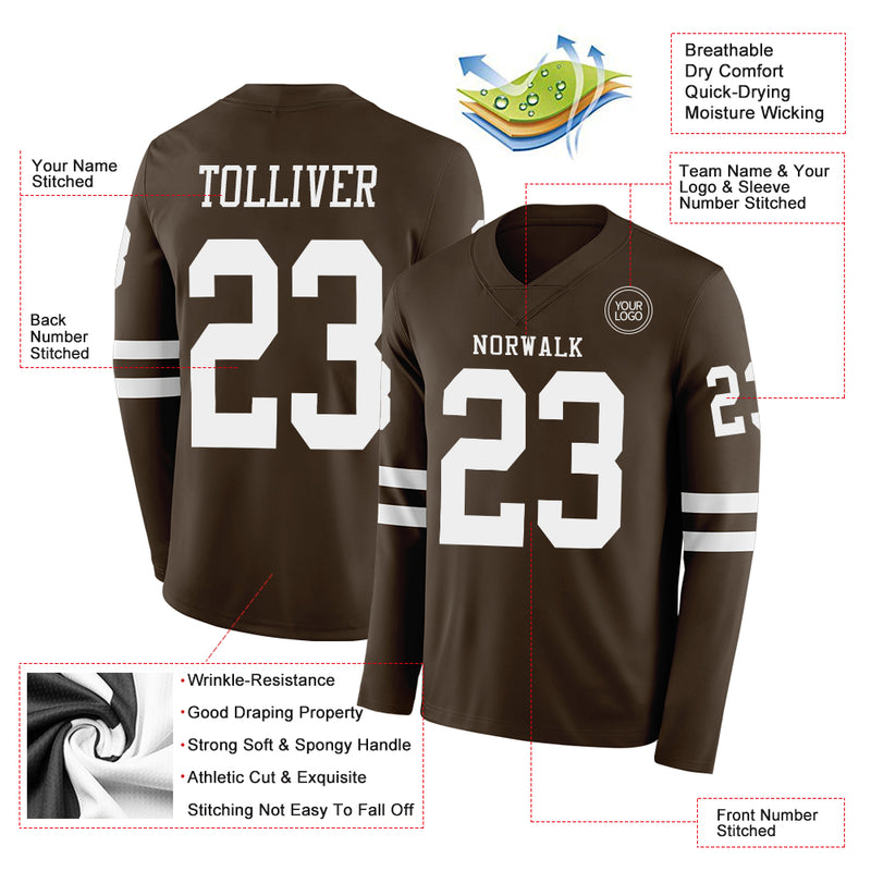 Custom Brwon White Long Sleeve Authentic Football Jersey