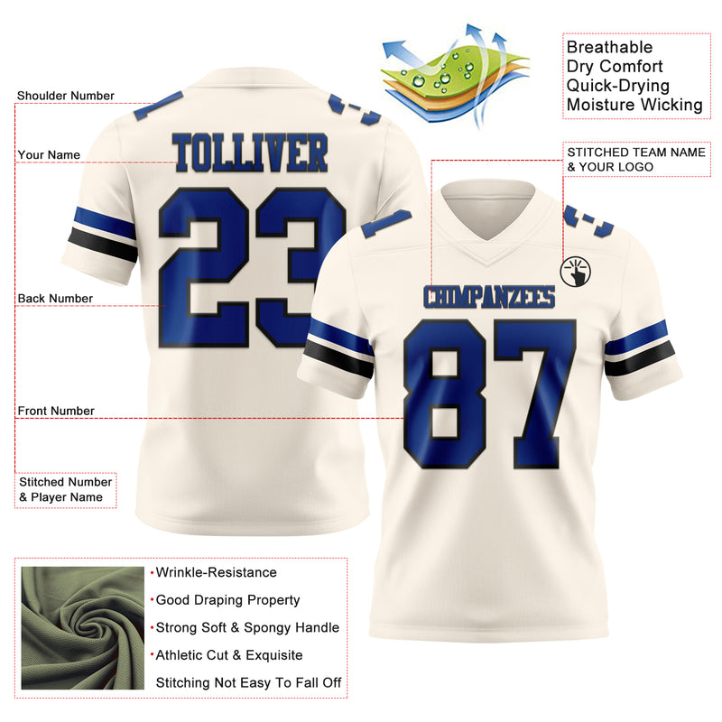 Custom Cream Royal-Black Authentic Football Jersey