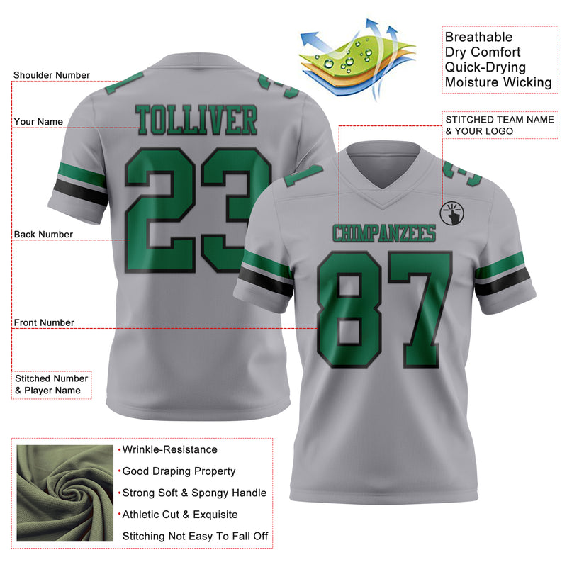Custom Gray Kelly Green-Black Authentic Football Jersey