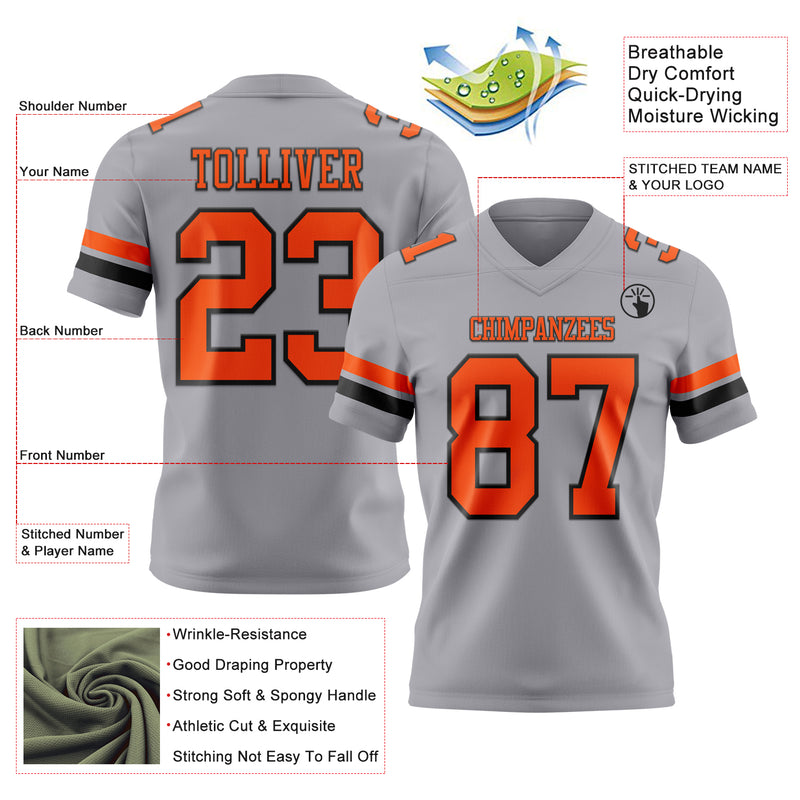 Custom Gray Orange-Black Authentic Football Jersey