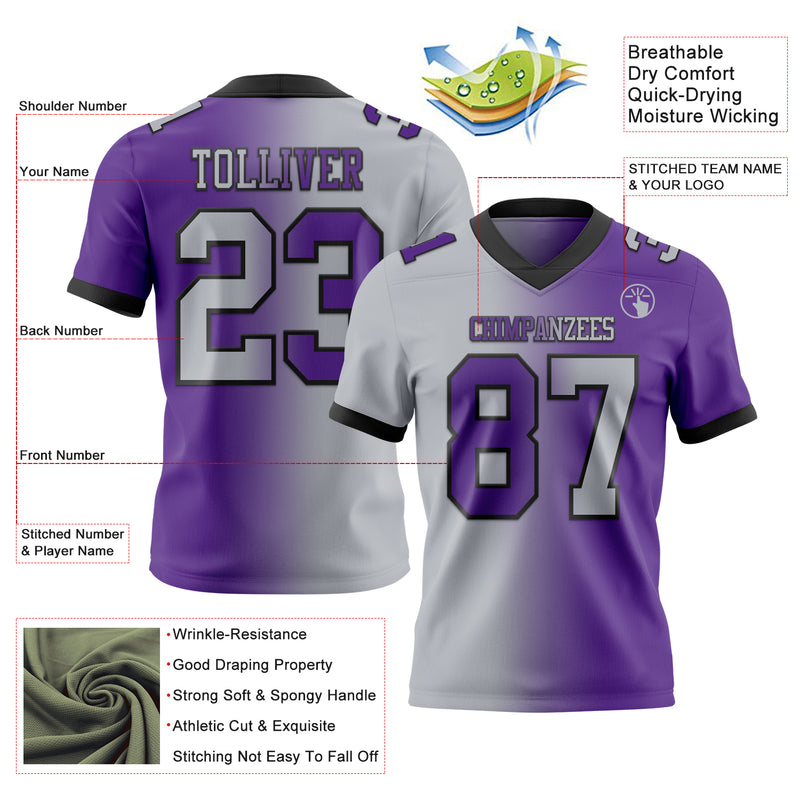 Custom Purple Gray-Black Authentic Gradient Fashion Football Jersey