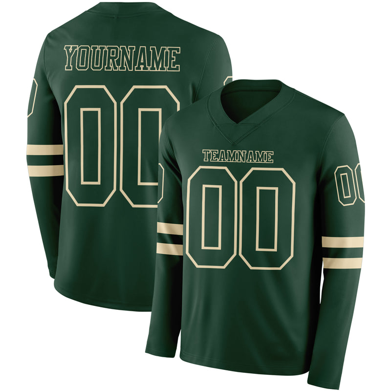 Custom Green Cream Long Sleeve Authentic Football Jersey
