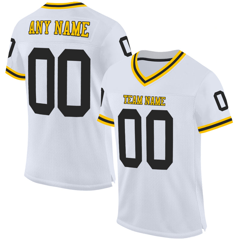 Custom White Black-Gold Mesh Authentic Throwback Football Jersey