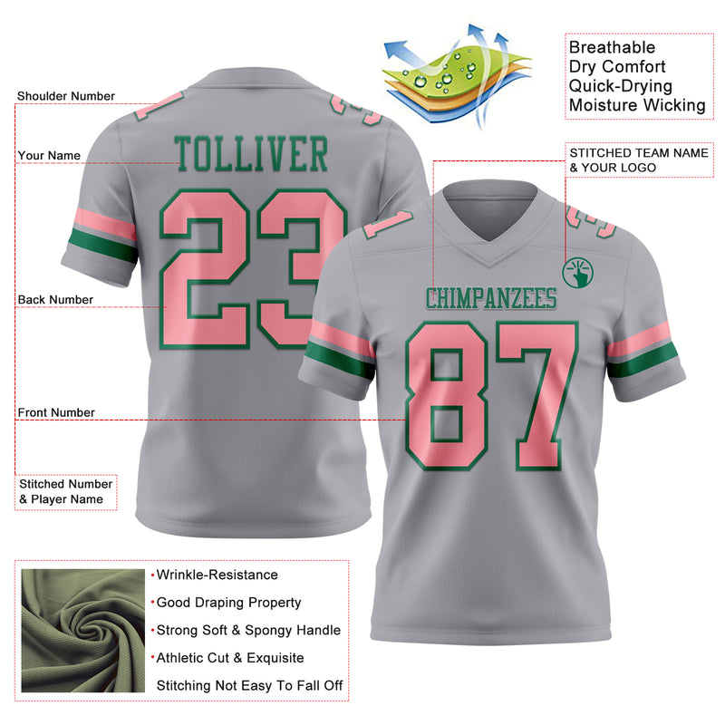 Custom Gray Medium Pink-Kelly Green Authentic Football Jersey