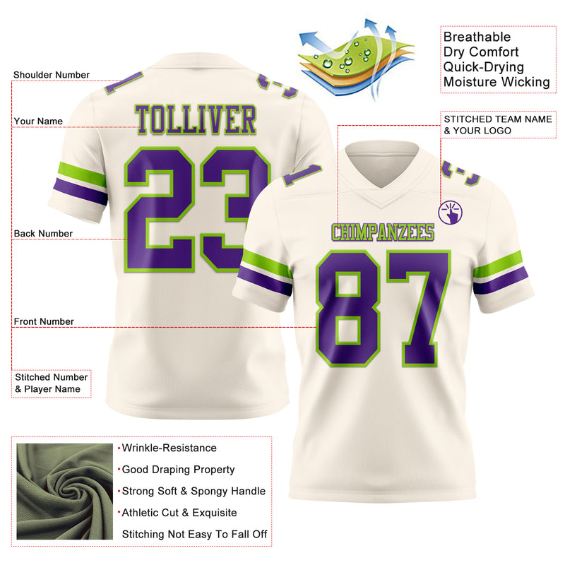 Custom Cream Purple-Neon Green Authentic Football Jersey