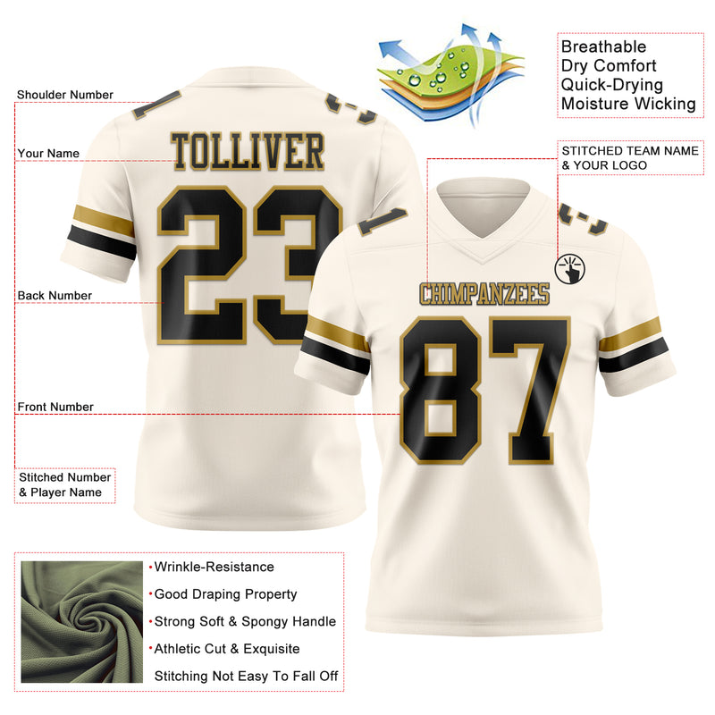 Custom Cream Black-Old Gold Authentic Football Jersey