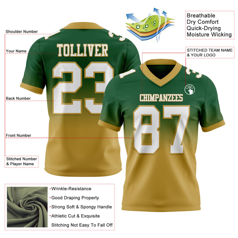 Custom Green White-Old Gold Authentic Fade Fashion Football Jersey