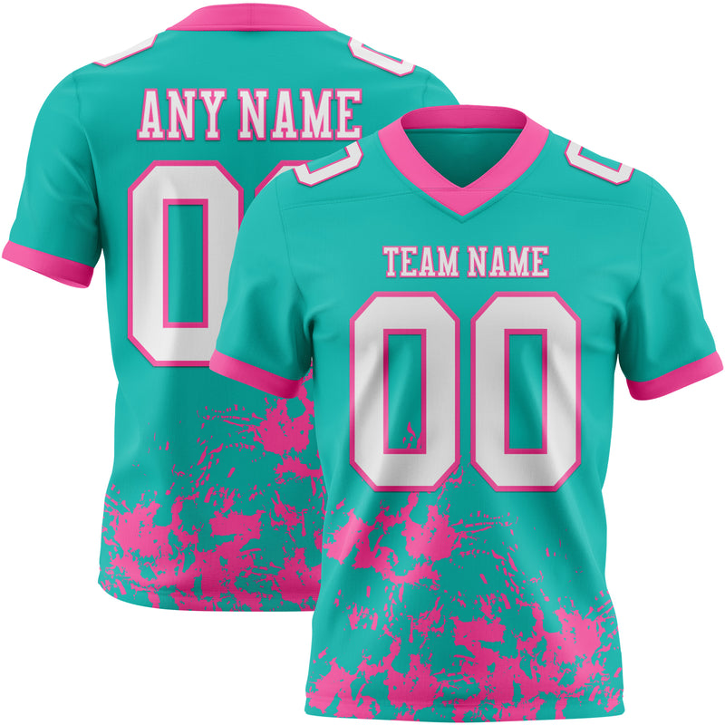 Custom Aqua White-Pink 3D Pattern Splash Authentic Football Jersey