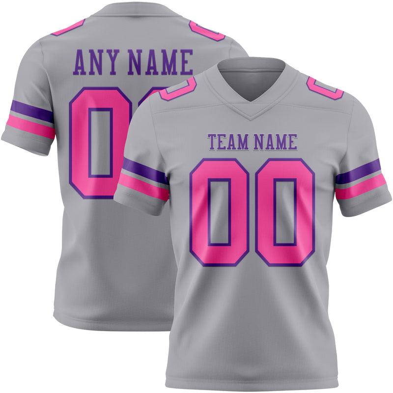 Custom Gray Pink-Purple Authentic Football Jersey