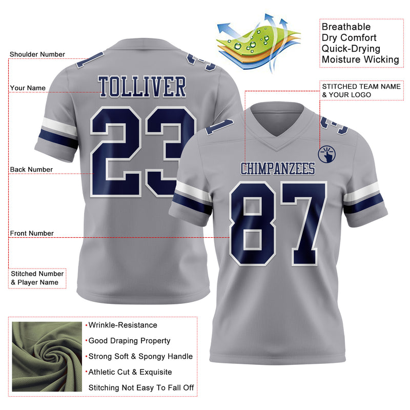 Our custom football jersey allows you to create your own design, adding your name, team logo, or any special graphics that represent your team spirit. Made from high-quality materials, it offers exceptional comfort and durability, ensuring you perform at your best in your custom uniform.