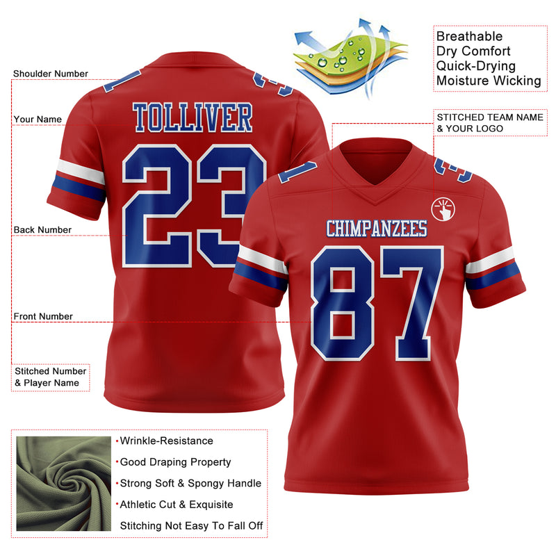 Our custom football jersey allows you to create your own design, adding your name, team logo, or any special graphics that represent your team spirit. Made from high-quality materials, it offers exceptional comfort and durability, ensuring you perform at your best in your custom uniform.