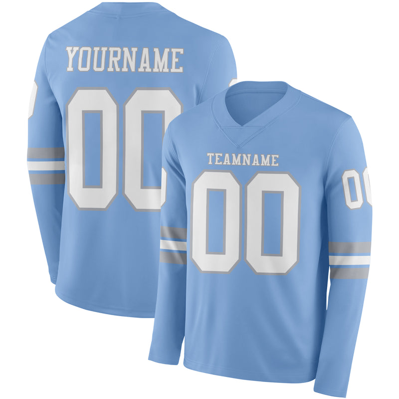 Custom Light Blue White-Gray Long Sleeve Authentic Football Jersey