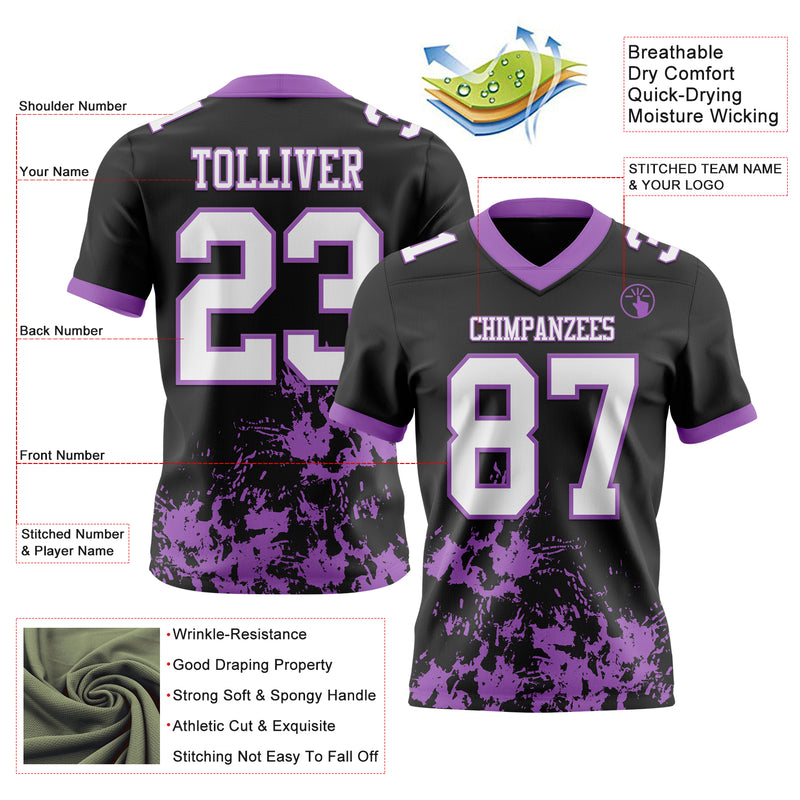Custom Black White-Medium Purple 3D Pattern Splash Authentic Football Jersey
