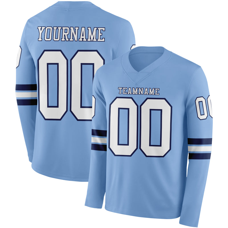 Custom Light Blue White-Navy Long Sleeve Authentic Football Jersey