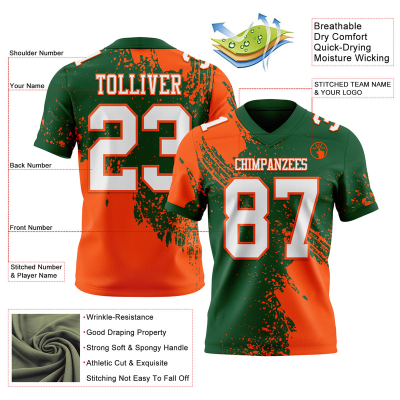 Custom Green White-Orange 3D Pattern Abstract Brush Stroke Authentic Football Jersey