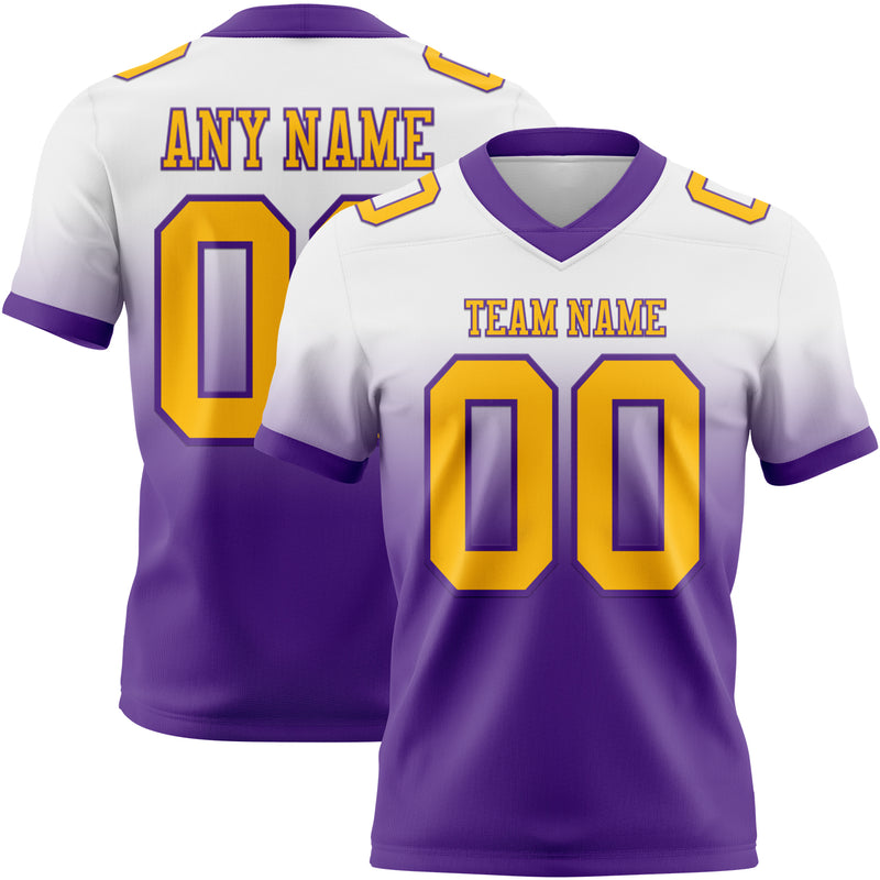 Custom White Gold-Purple Authentic Fade Fashion Football Jersey