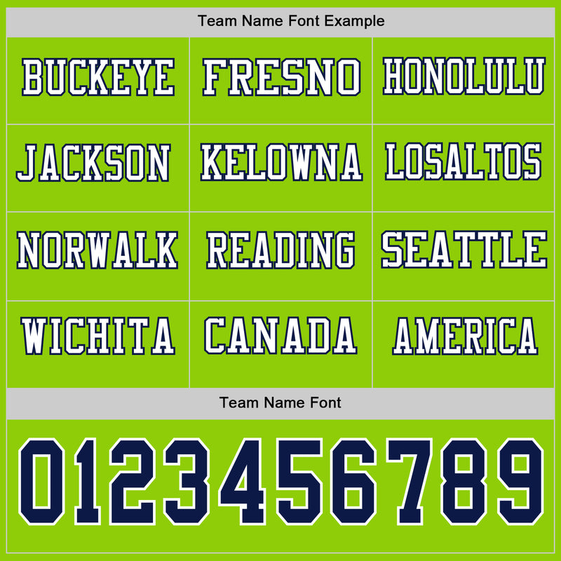Custom Neon Green Navy-White Long Sleeve Authentic Football Jersey