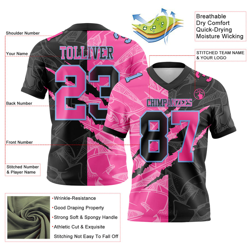 Custom Black Pink-Light Blue Authentic Gradient Fashion Scratch Football Jersey