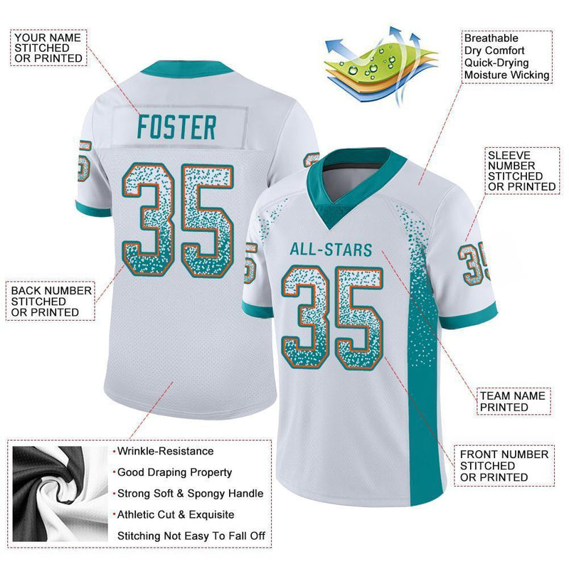 Custom White Aqua-Orange Drift Fashion Football Jersey