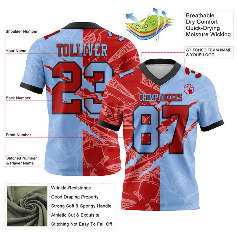 Custom Light Blue Red-Black Authentic Gradient Fashion Scratch Football Jersey