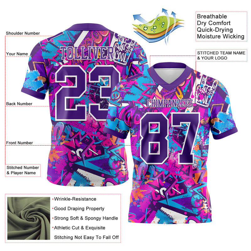 Custom Graffiti Pattern Purple-White 3D Pattern Splash Authentic Football Jersey