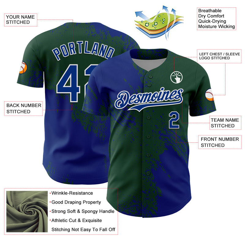 Custom Royal Green-White 3D Pattern Design Abstract Brush Stroke Authentic Baseball Jersey
