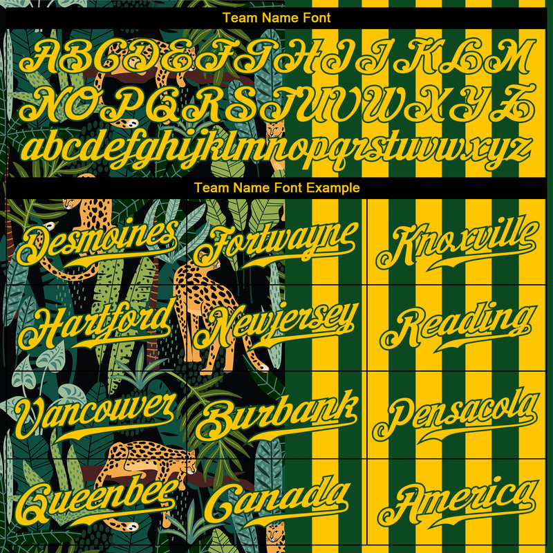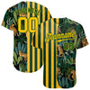 Custom Green Gold-Black 3D Pattern Design Leopards And Tropical Palm Leaves Authentic Baseball Jersey