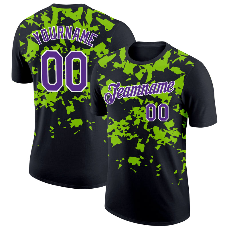 Custom Black Purple-Neon Green 3D Esports Performance T-Shirt