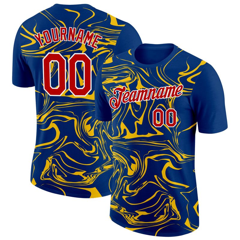Custom US Navy Blue Red-Yellow 3D Esports Performance T-Shirt
