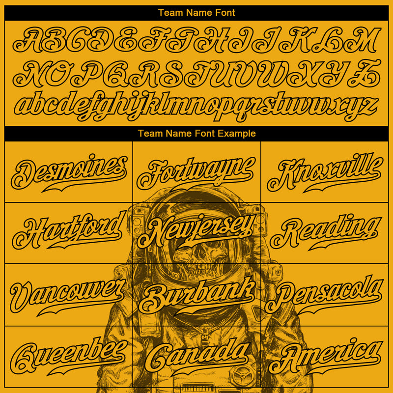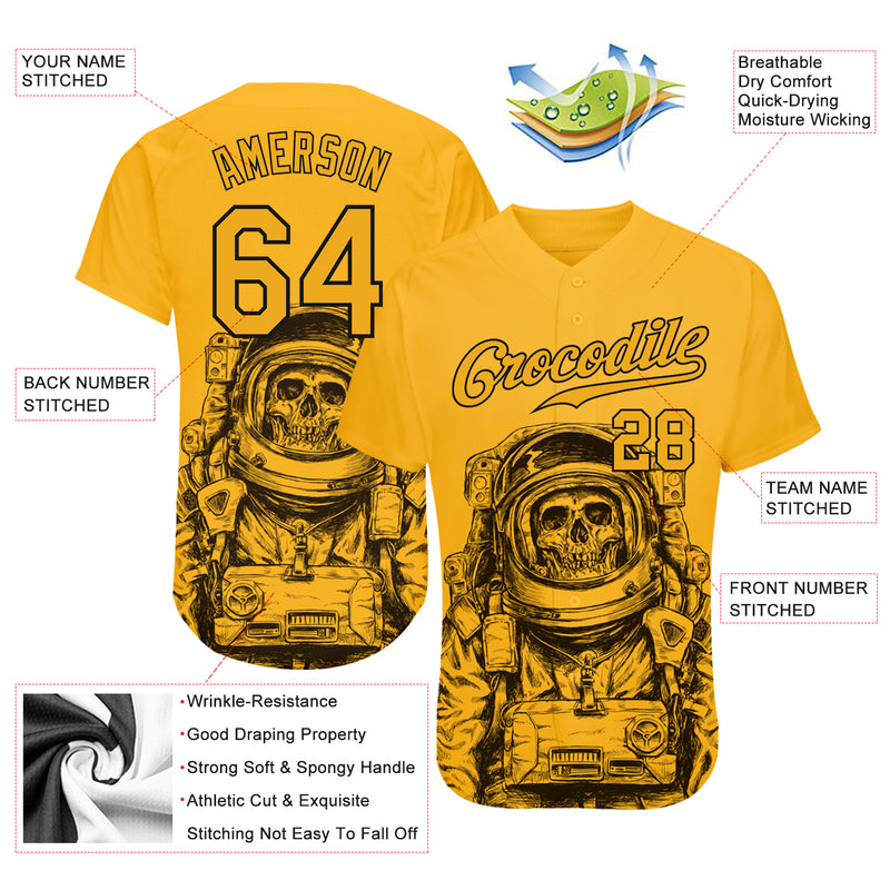 Custom Gold Gold-Black 3D Pattern Design Astronaut Authentic Baseball Jersey