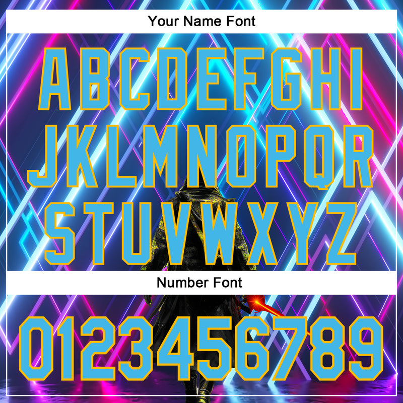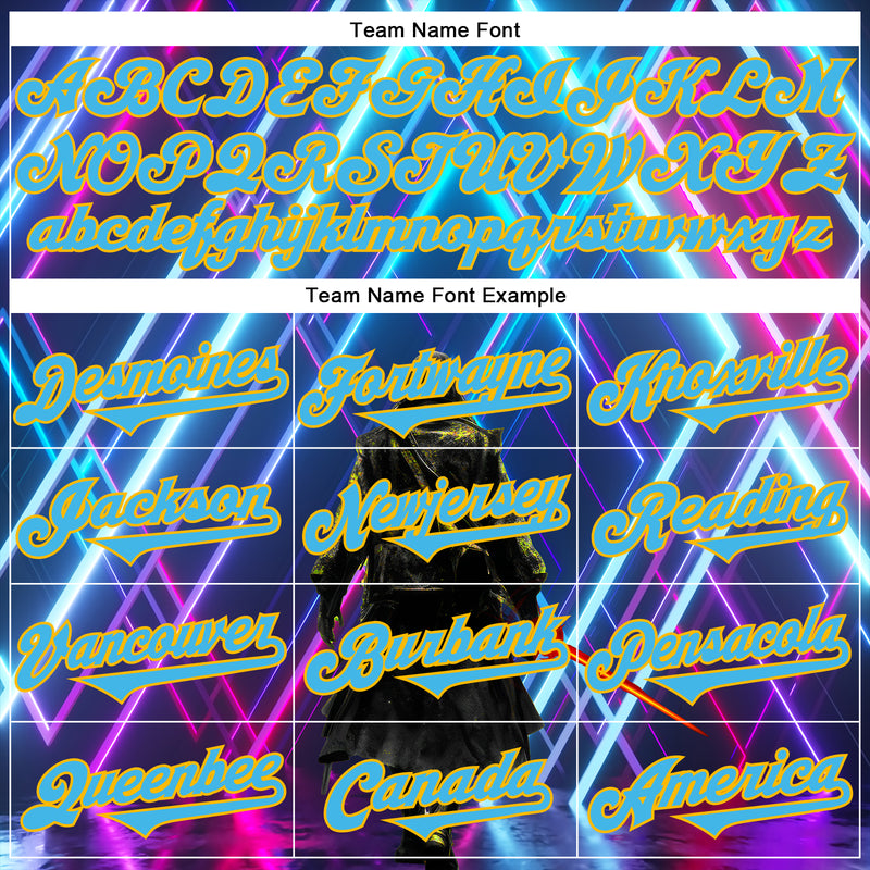 Custom Blue Sky Blue-Gold 3D Pattern Design Outer Space Light Swords Authentic Baseball Jersey