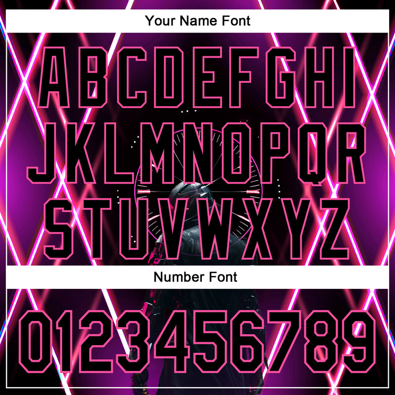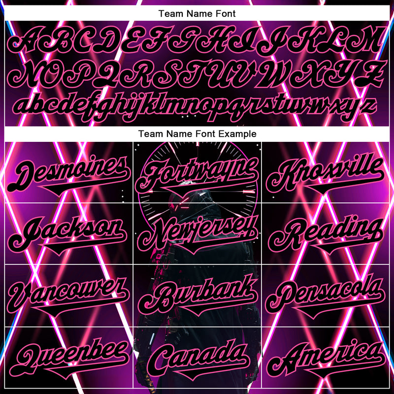 Custom Blue Black-Pink 3D Pattern Design Outer Space Light Swords Authentic Baseball Jersey