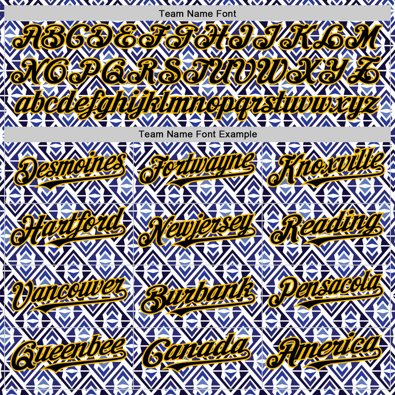 Custom White Black Royal-Gold 3D Pattern Design Rave Party Monogram Geometric Shape Authentic Baseball Jersey