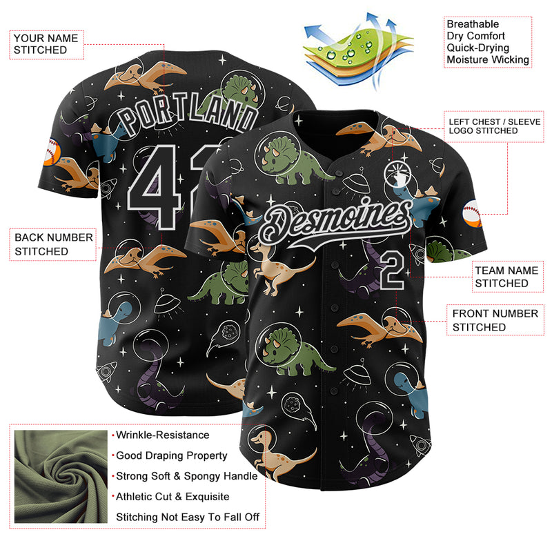 Custom Black Black-White 3D Tobe Fonseca Dinostellar Space Dinosaurs Authentic Baseball Jersey