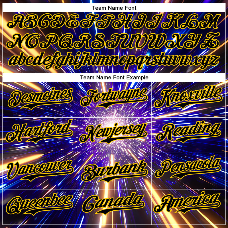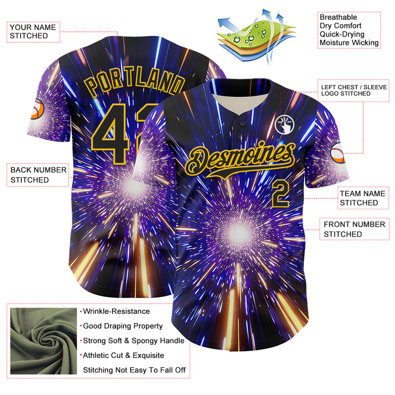 Custom Blue Black-Yellow 3D Pattern Design Outer Space Time Travel Authentic Baseball Jersey