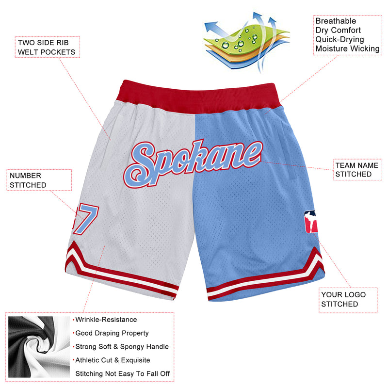Custom White Light Blue-Red Authentic Throwback Split Fashion Basketball Shorts